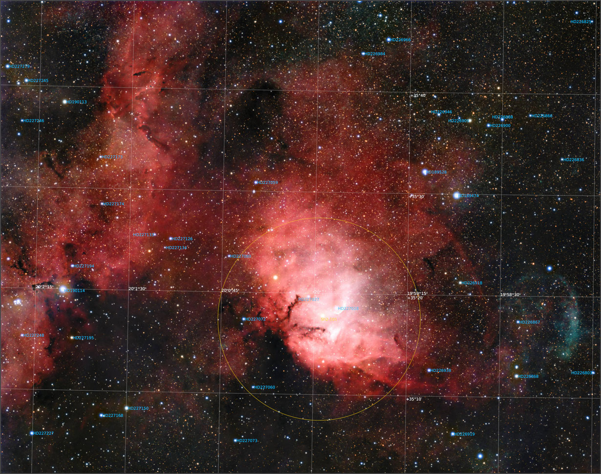 Bei Sh2-101 handelt es sich um einen HII-Nebel im Sternbild Schwan. Der Emissionsnebel ist in etwa 6.200 Lichtjahre entfernt. Der Nebel erinnert von seiner Form her an eine Tulpenblüte. Daher auch die Bezeichnung Tulpennebel.